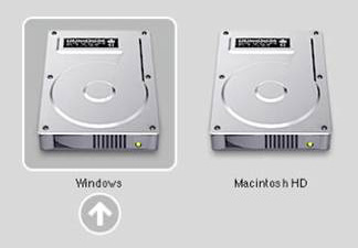 En äldre MacBook Pro hade både OS X och Windows. När datorn startades kunde man välja operativsystem genom att hålla nere Alt-tangenten, då visades följande meny där man kunde välja ”Windows” eller ”Macintosh HD”: